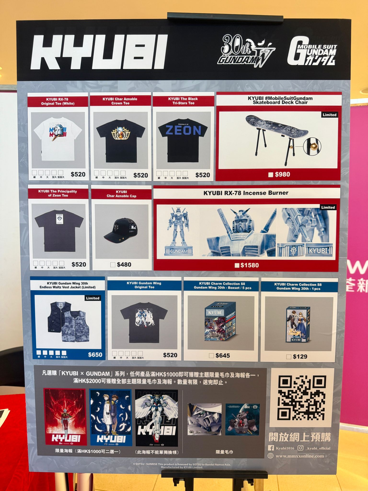 秉承 KYUBI「Have A Young Heart」的品牌理念,是次聯乘系列將高達精神融入潮流童趣設計,推出多款香港限定商品。系列包括聯乘 Tee、手提袋、飾物配件及極具收藏價值的 14 款《新機動戰記高達W》系列 30 周年金屬收藏掛飾,不僅希羅‧尤、狄奧‧麥韋、多諾華‧巴頓、卡多魯‧魯賓‧溫拿及張五飛等全員主角登場,更以精緻工藝還原經典戰事名場面,全系列數量有限,僅於香港地區發售,每一款都是收藏級限定珍品,勢將成為今年聖誕節最矚目的潮流話題焦點!同場特設高達系列周邊及超限量高達系列模型發售。