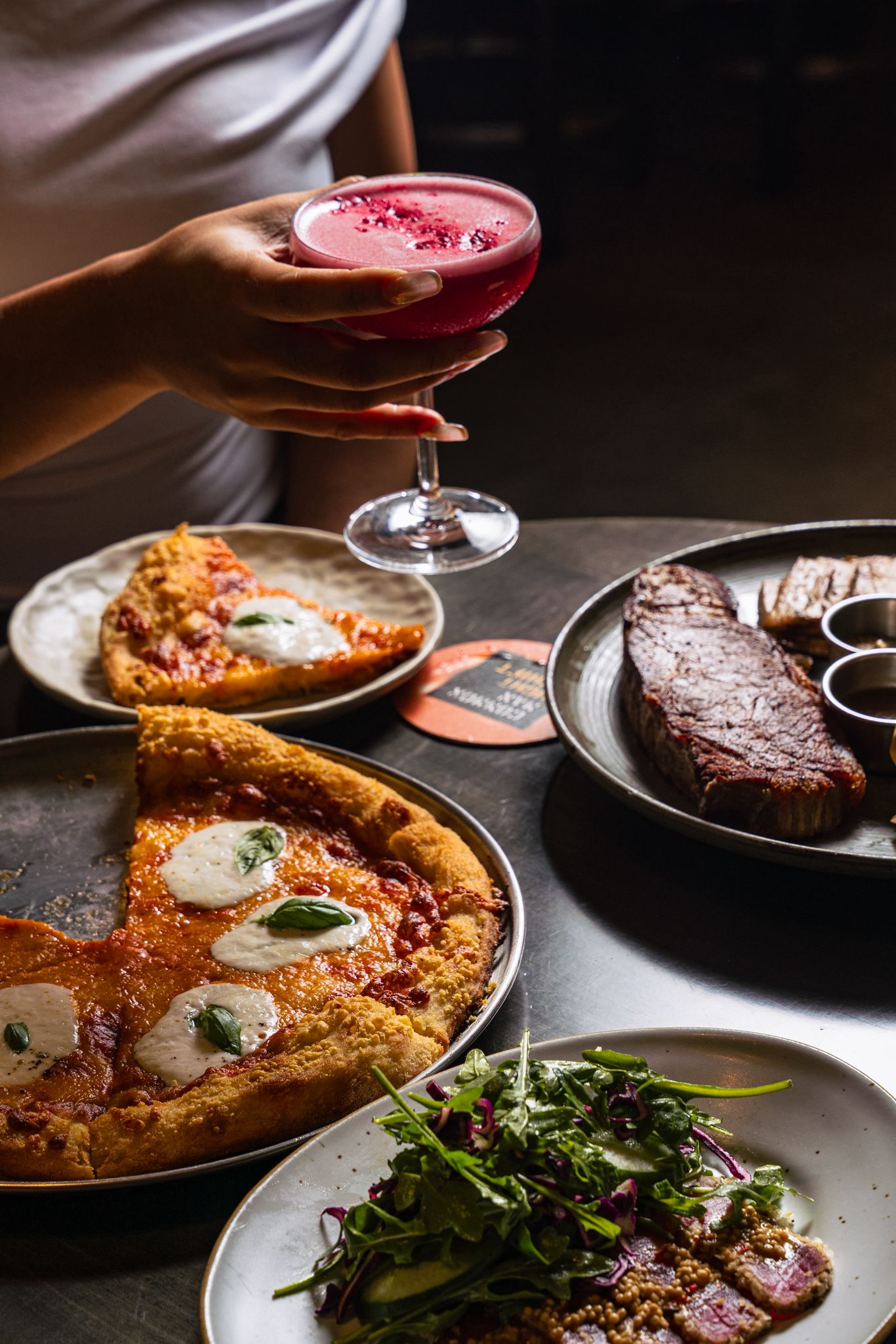 接下來,客人可以按喜好選擇主菜,包括經典瑪格麗塔薄餅、意式肉迷薄餅,肉味香濃,餅底金黃酥脆。還有揉合港式元素的香辣肉醬天使麵或香蒜橄欖油大蝦扁意粉,蒜香瀰漫,每一啖都香口惹味。