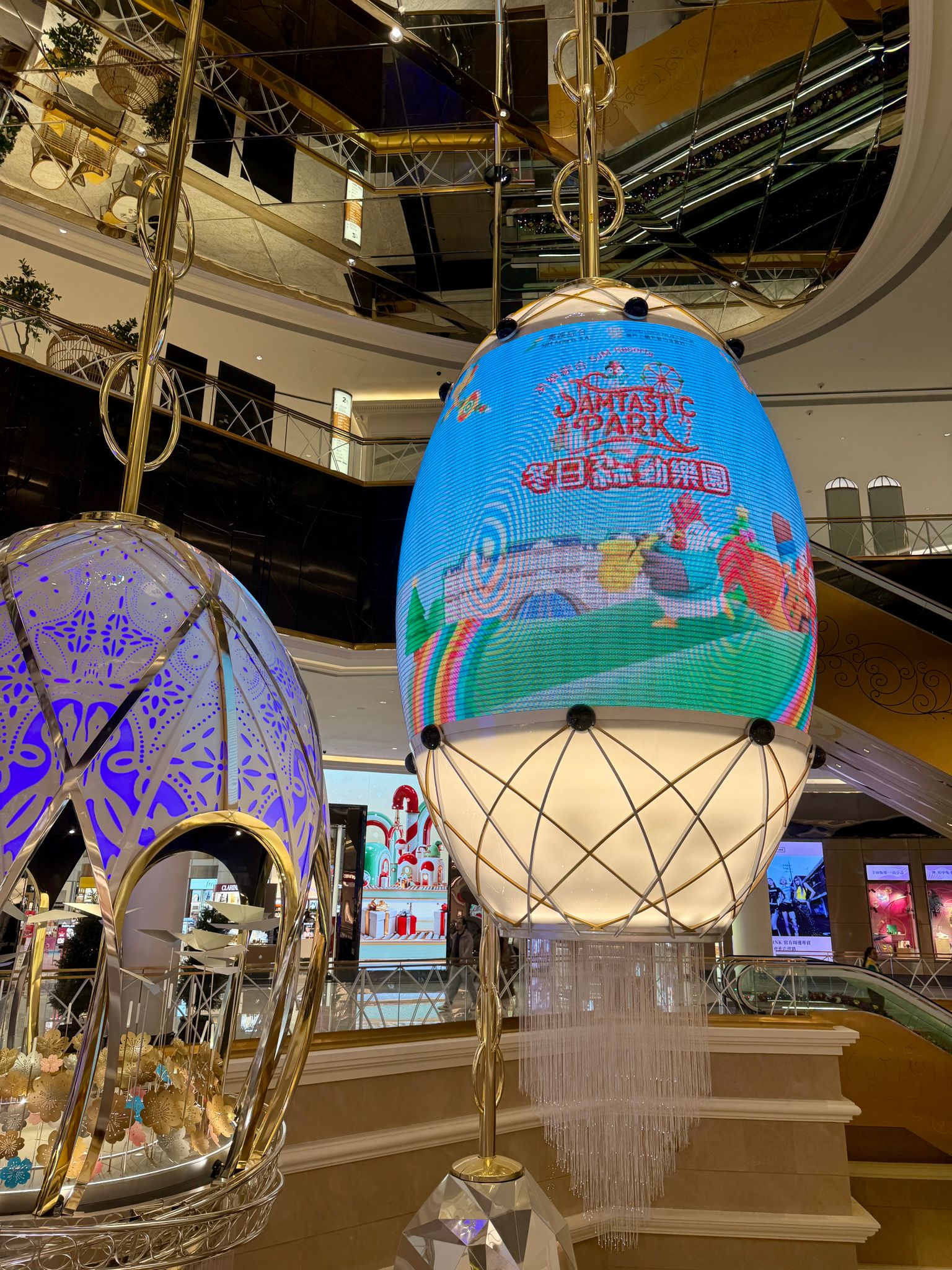 走近上葡京酒店,首先映入眼簾的是巨型充氣「森仔」裝置迎接每一位賓客;而東門則設有「森」動摩天輪樹,營造出迷人夢幻景象。