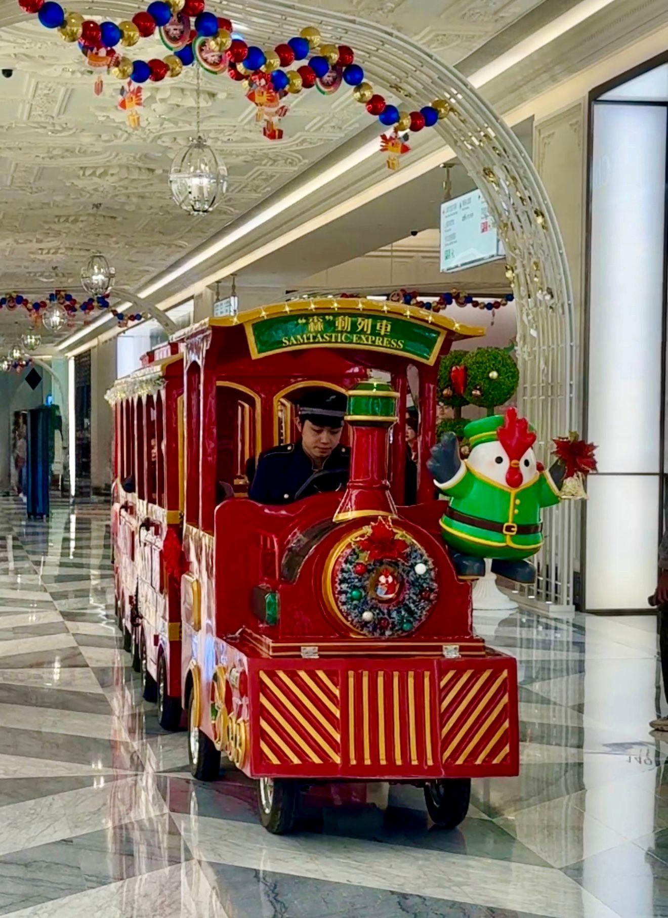 上葡京一樓中庭設有「森」動列車總站,列車已蓄勢待發,載著滿心期待的小乘客穿梭上葡京購物中心一樓。「森」動列車總站商店更推出多款獨家「森仔」冬日限定紀念品,如掛飾、盲盒、以及主題毛公仔等。
