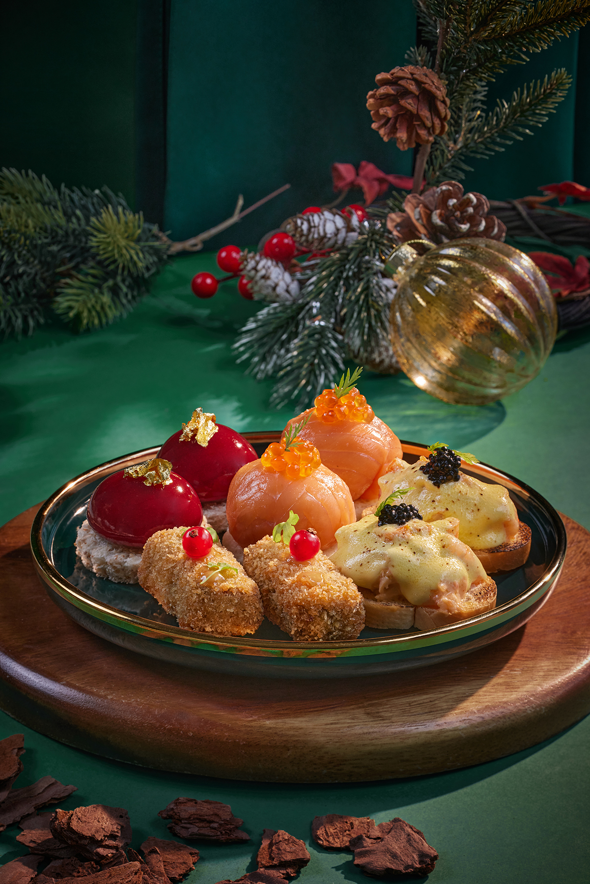 甜點則有聖誕老人雲呢拿馬卡龍、聖誕樹造型開心果朱古力蛋糕、聖誕帽造型紅桑子杏仁撻,以及聖誕球造型柚子慕絲蛋糕。再配上新鮮焗製英式鬆餅,佐以忌廉與果醬,並附上咖啡或茗茶,為節日添上經典風味。