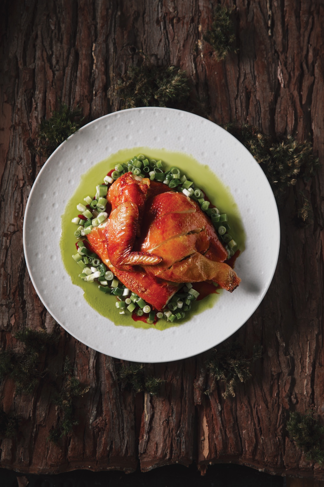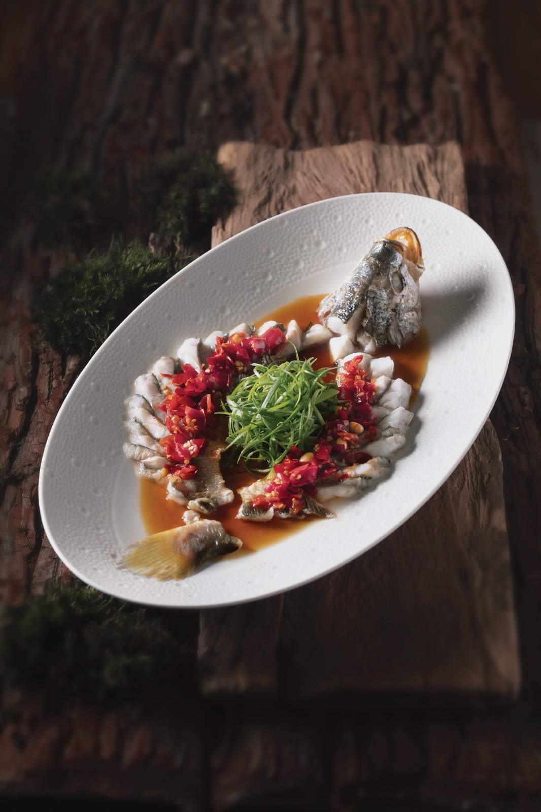 在菜式設計上,《玥派》著重工序、比例與時間的掌握。招牌的蔥油脆皮雞以八小時用蔥煉成的油提升香氣,外層酥香、內裡細嫩;鮮辣剁椒黃花魚則先完整起骨,再將魚肉切成細緻均勻的「一梳梳」形態,重新排回魚形。恰到好處的辣度帶出層次,而不掩蓋原味。