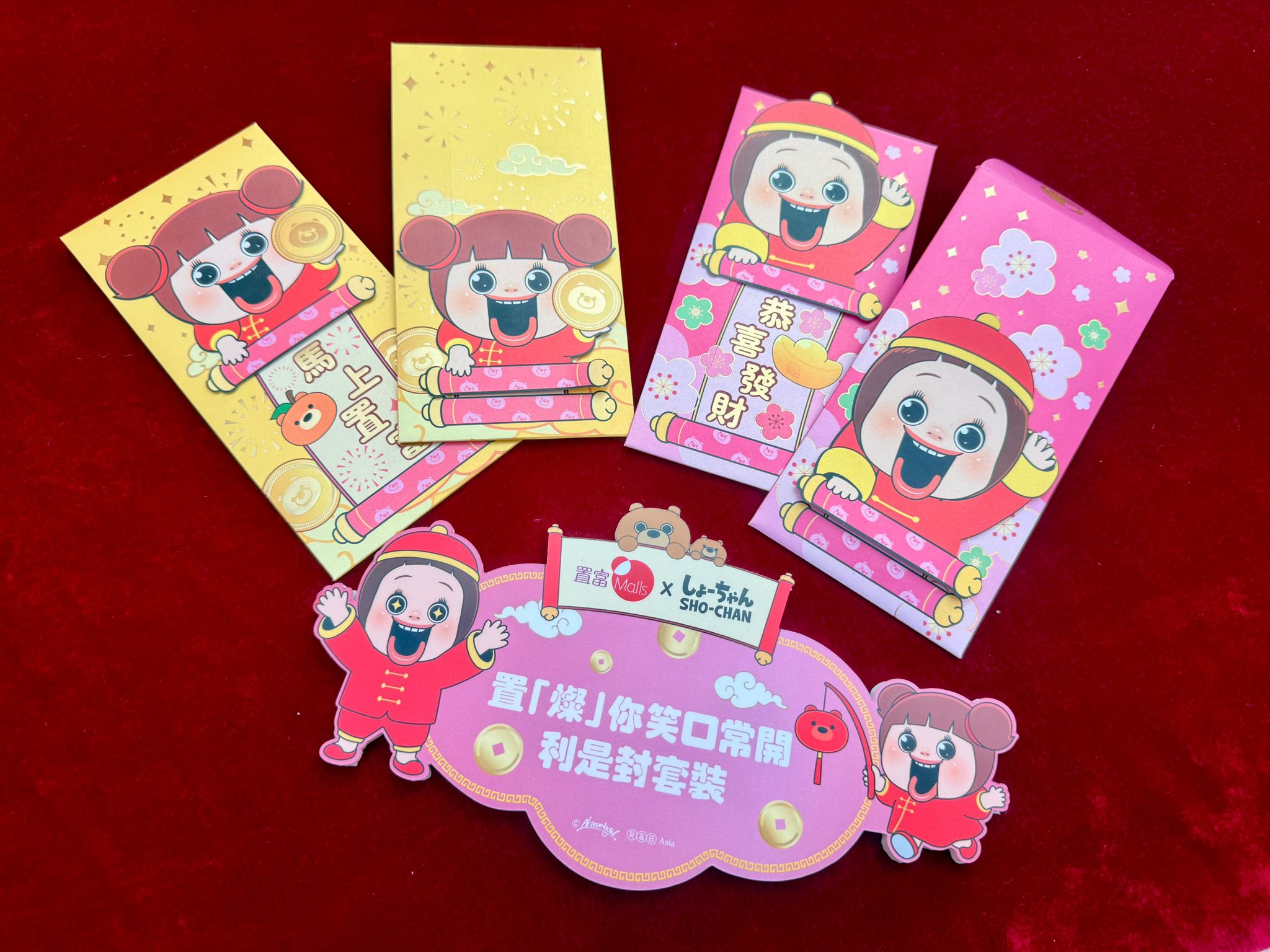 而少不了的有 置富Malls x SHO-CHAN 新春禮品換領,珍藏應節禮品包括:置「燦」你笑口常開利是封套裝及「置」暖入心咕0臣被,利是封的燦子和妹妹小琪還可以藏有互動小機關,以開心笑顏拉開揮春捲軸向各位賀年!保持笑容的燦子咕0臣被,簡易變身咕0臣及小毯,溫暖度過天氣多變的冬日,有顏值也實用,記下換領日期,準時來換領吧!