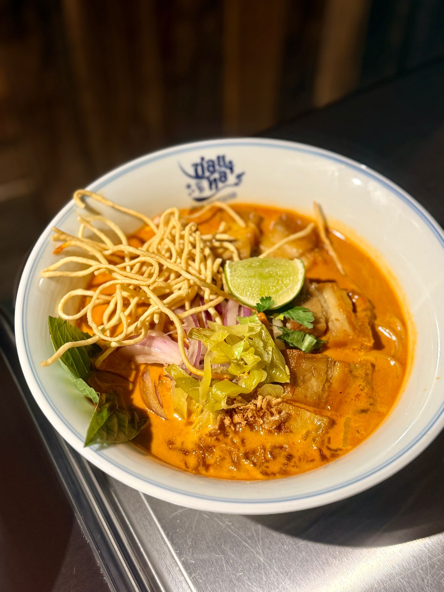 餐廳主打招牌「泰北古法船面」及「泰北咖哩湯面」,湯底濃郁香辣、配料新鮮豐富,完美重現泰國小巷的經典滋味,卻又注入現代創意,讓每碗面都成為味蕾驚喜。