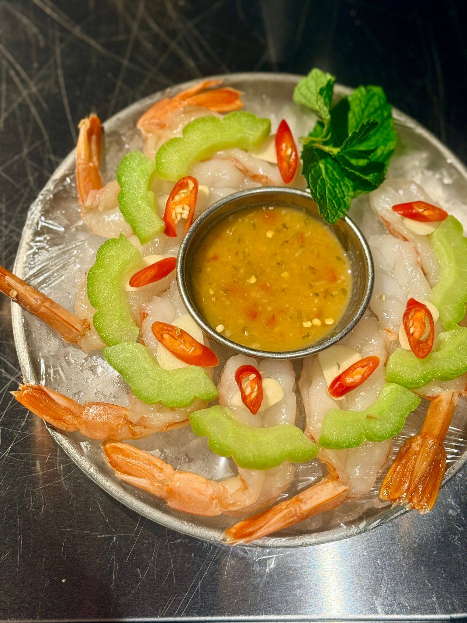 嚴選阿根廷赤蝦醃制而成,肉質爽脆鮮甜,細膩彈牙。配以主廚秘制酸辣汁,酸香開胃、辛香平衡。