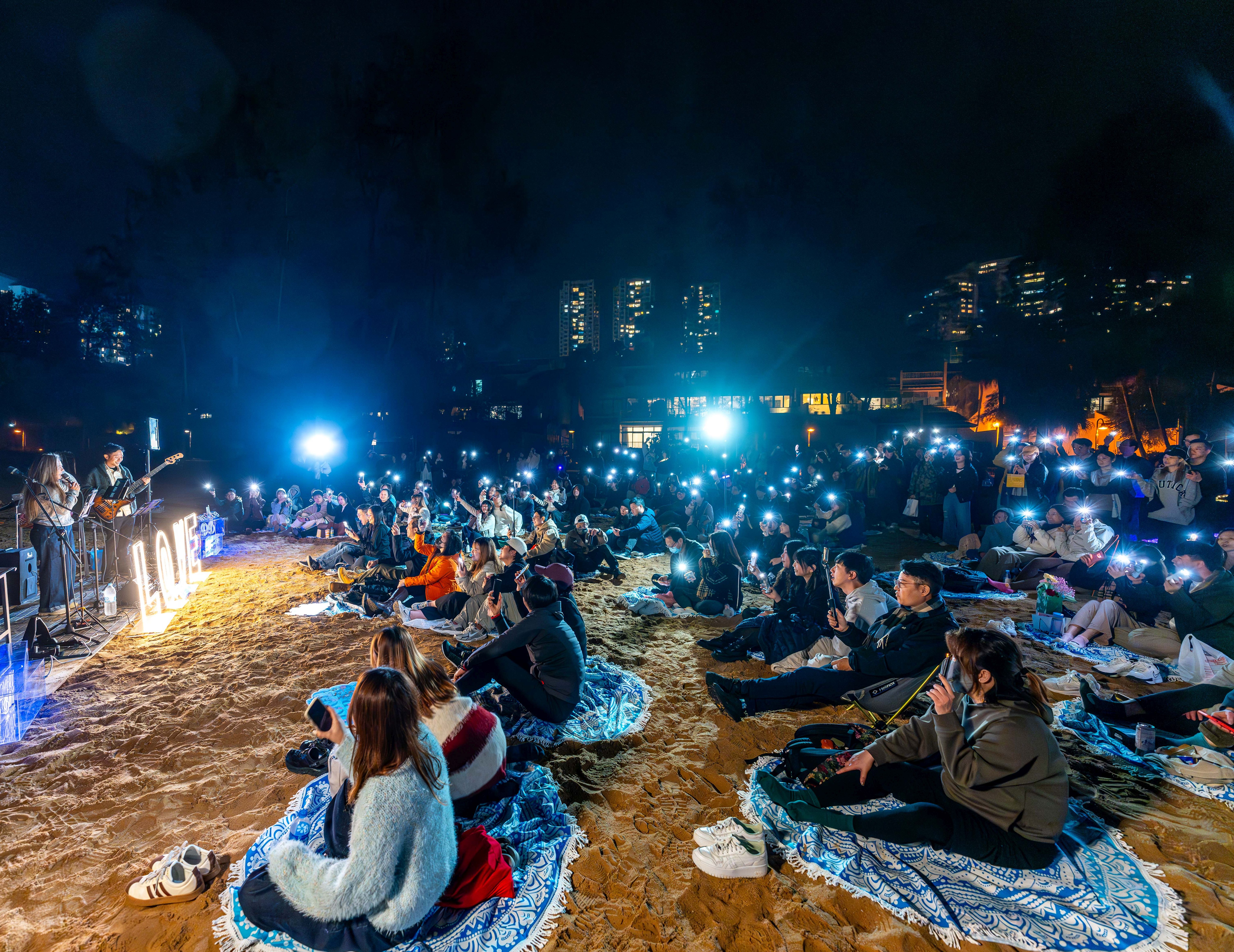 2 月 14 日傍晚,大白灣沙灘將亮起超過 7,000 粒 LED 燭光,砌成約 8 米的巨型心形及十多組精緻心形圖案,成為全港最具規模的戶外燭光浪漫沙灘打卡位,並可欣賞本地人氣 Busking 樂隊 The Flame 現場獻唱。