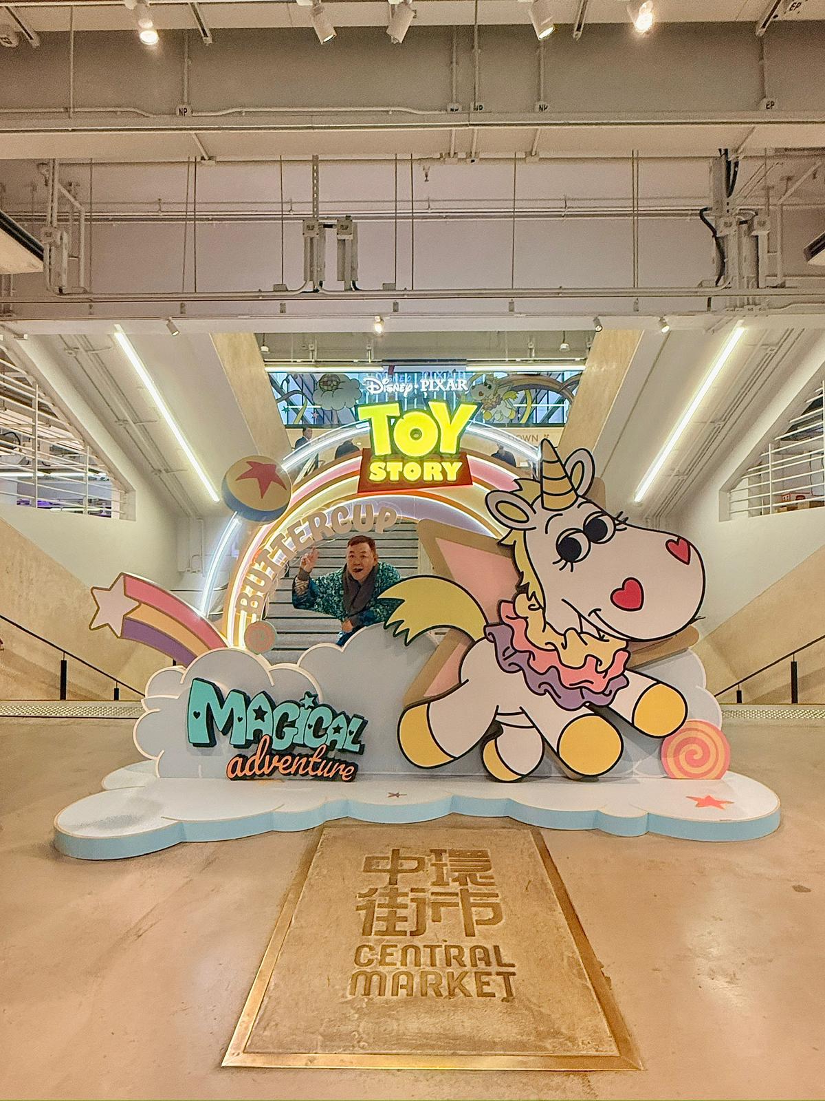 中環街市今年將滿載歷史底蘊的空間幻化成一座夢幻花園,呈獻「幻彩躍馬迎新春」慶典,特別以打卡主題裝置形式,呈現《反斗奇兵》(Toy Story)中兩位超人氣角色:憨厚可愛的紅心(Bullseye)與萌感十足的獨角獸牛油仔(Buttercup),以可愛活潑的打卡場景,陪大家度過一個融合新春喜慶與情人節浪漫的佳節。