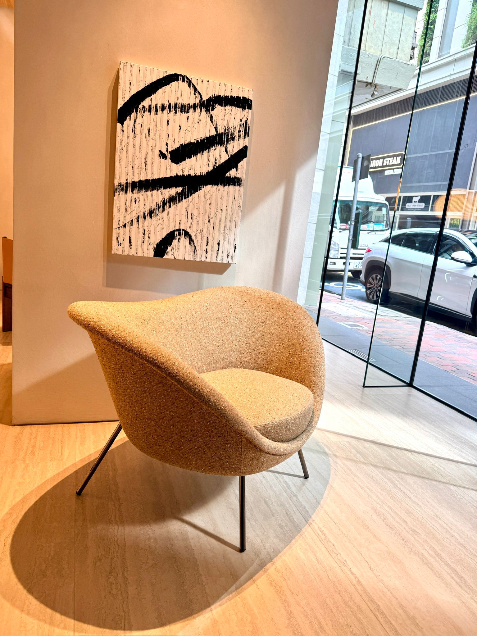 甫進店門是 2025 年的室內系列。整個空間以 Christophe Delcourt 設計的 Emile組合梳化及 Maylis 咖啡桌展開序幕,旁邊伴隨著 Tobia Scarpa 設計的 Monk 扶手椅。