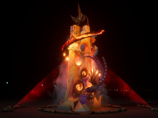 主燈「飛馬耀桃園」位於虎頭山創新園區,燈組以超過300個金屬切面組構而成,主燈具備360度旋轉底座,翅膀則是用「多軸翼載機械臂」技術實現動態展翼,結合煙霧、燈光與雷射特效,演出「雲啟、集眾、凌雲、御空、啟航」5種劇情,活動期間每天晚上6時起每30分鐘展演1次。