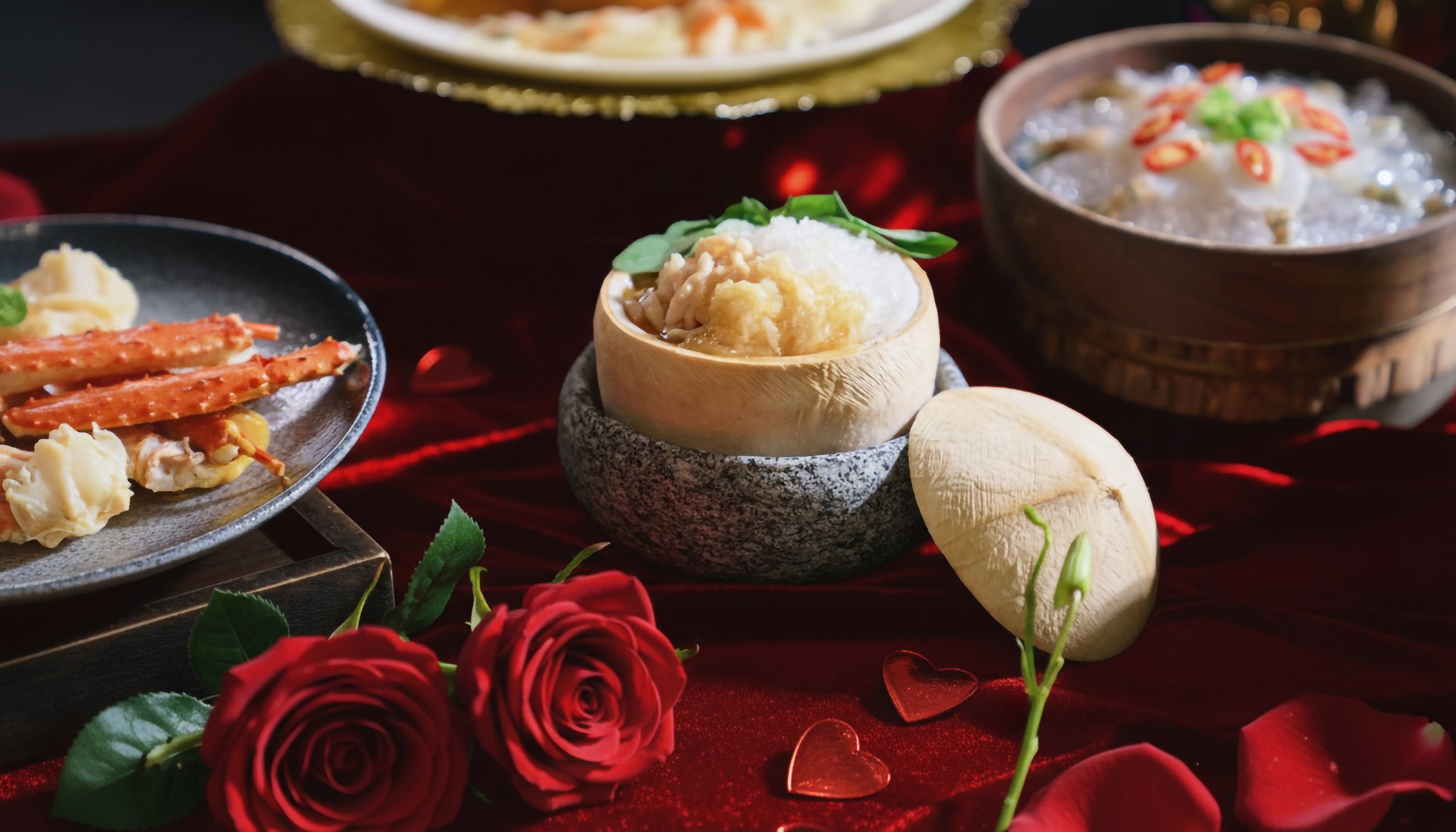 Mue Mue 2人用「泰」浪漫情人節套餐,包括原個椰皇雪燕、泰皇咖喱龍蝦、酸辣脆皮雞、鑊氣十足的泰胡椒海鮮炒糯米河,及情人節專屬雪糕心型芒果糯米飯,以泰式美食融化您們的心。每位可選擇加配 $200暢飲精選啤酒、紅白酒及氣泡酒。套餐將於2月13日至2月14日提供,兩位用$1,088;現凡經Mira eShop預購可享免加一服務費。