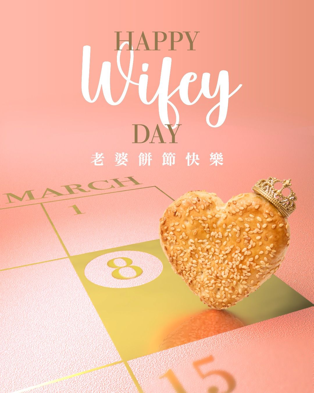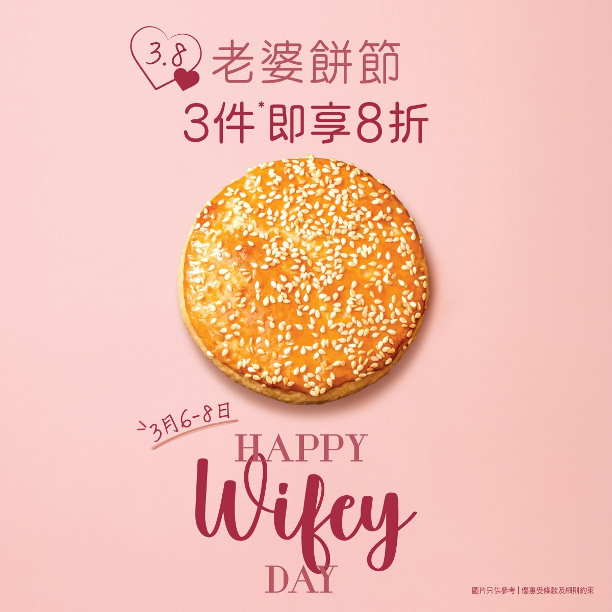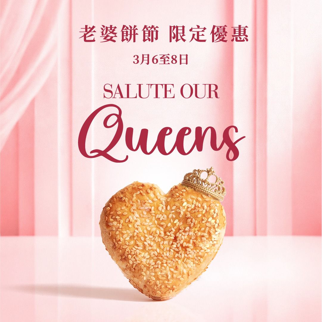 而在 3 月 8 日當天,更於指定分店加推「新鮮焗製心形老婆餅買一送一」限定禮遇。外酥內軟的冬蓉內餡配上心形造型,以滿滿的誠意為每位值得被好好對待的「她」送上溫暖心意。