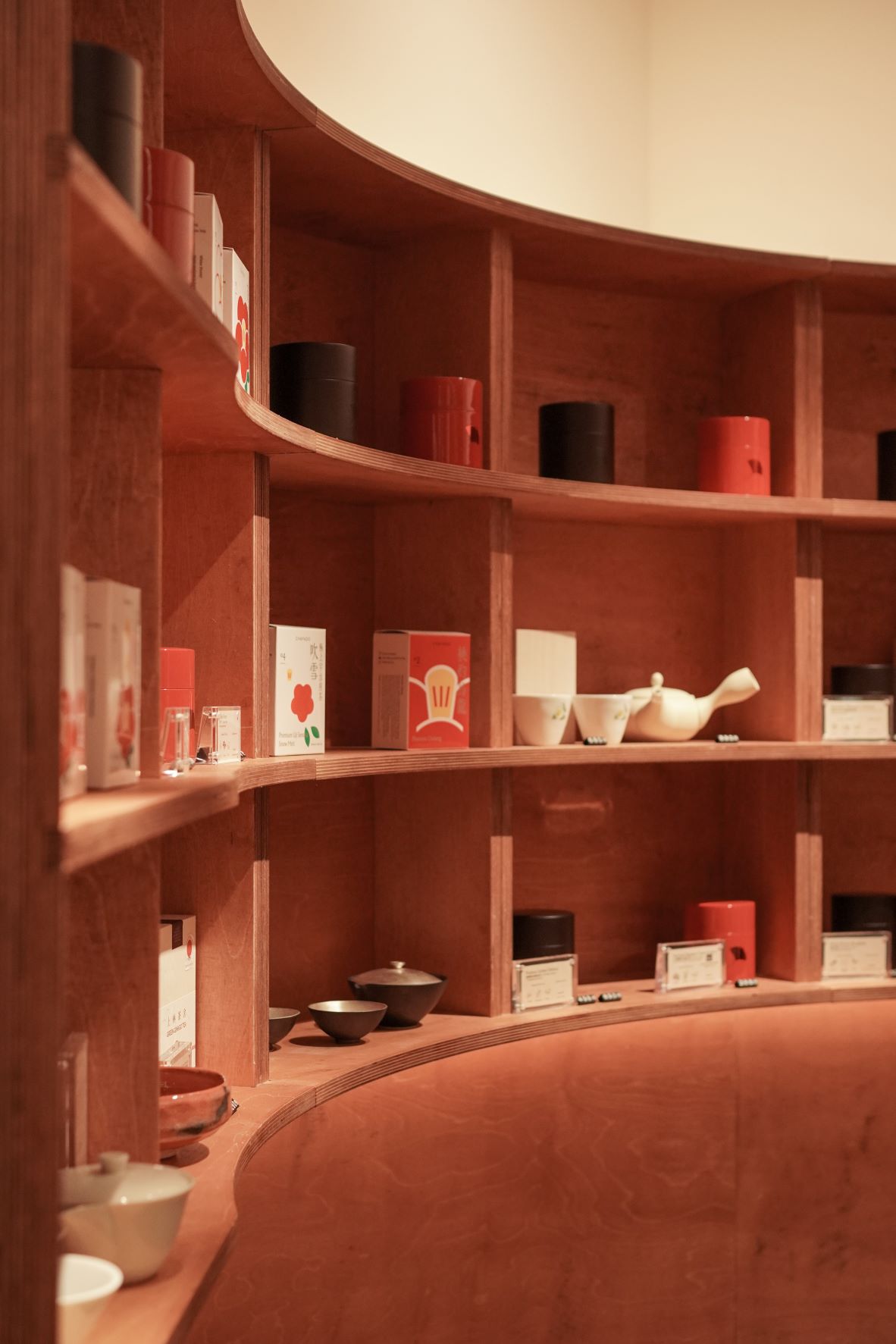 上林茶舍源於香港,新店亦採用了本地製作的元素,中央偌大的展示櫃於香港本地製作,並染上日本柿汁:一種千年歴史的防蟲保養木材工藝,木材染以柿汁後會隨年月變得更紅暈迷人。除了現場製作的茶飲外,客人亦可以搜購到日本、台灣和中國的特色茶葉、茶包和其他茶產品。