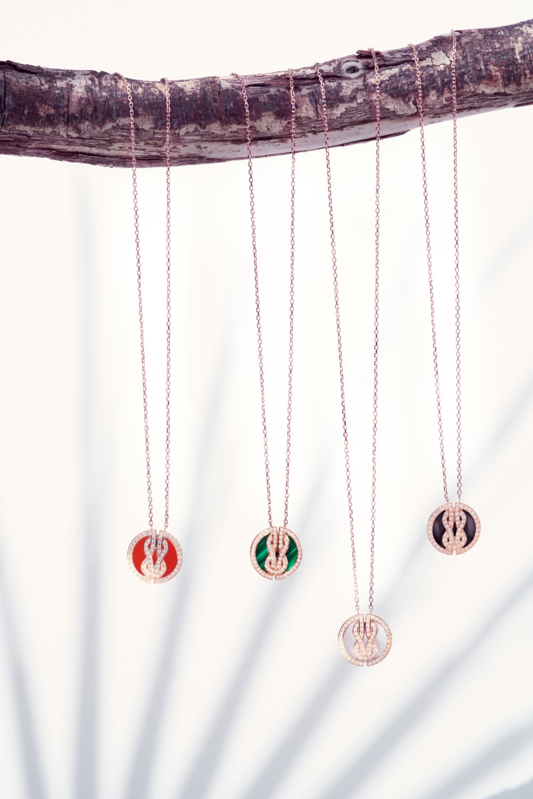 送給媽媽的當然要是最好的禮物,FRED 從「心」底裏獻上數款Pretty Woman精美項鏈。鏤空的「心心相印」設計象徵著母親的真誠與溫情。兩種尺寸吊墜可雙面佩戴,帶來歡快、驚喜的造型選擇。珍珠母貝凸顯女性的優雅,孔雀石則是開朗與健康的吉兆。惹眼的紅玉髓飽含深情與愛,散發自信活力。